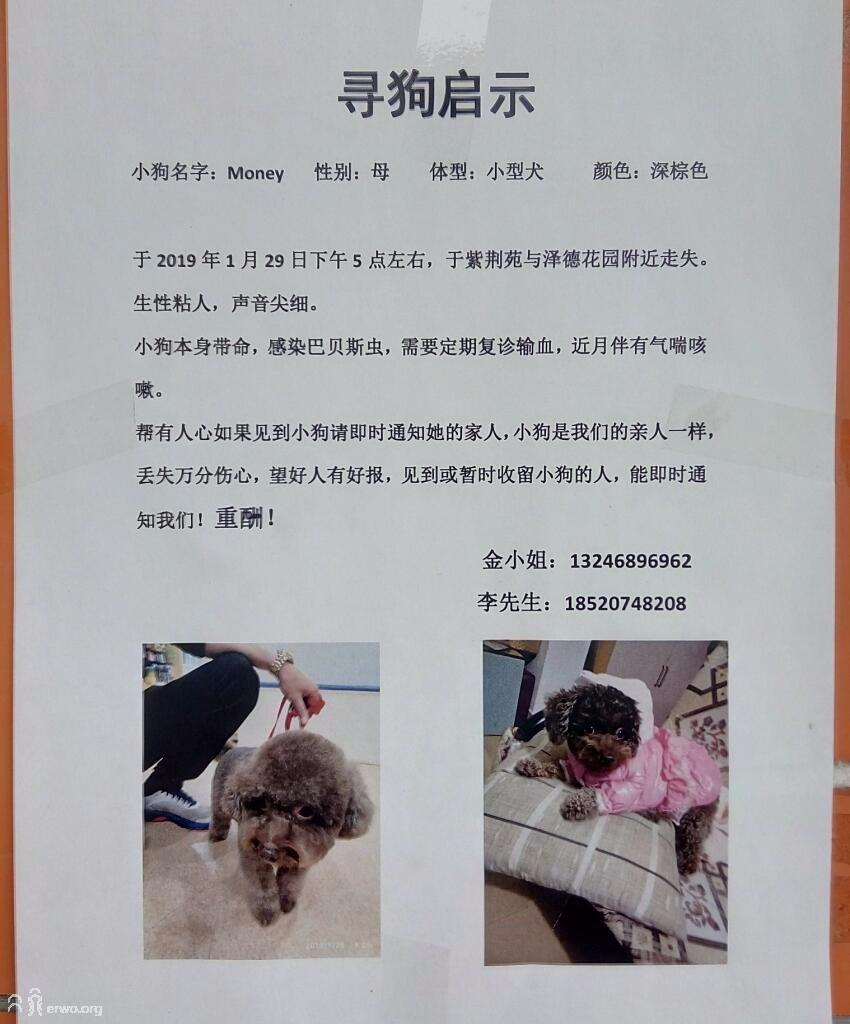 寻狗启示:小狗名字_Money 性别:母 体型:小型